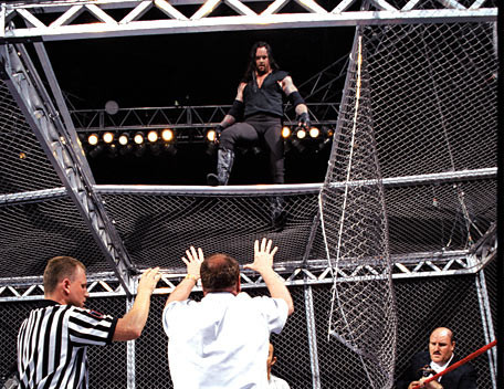 L’Undertaker va alors reprendre sa rivalité avec Mankind. Cette dernière va culminer avec l’un des plus fameux matchs de l’histoire du catch. Durant le King of the Ring, dans un Hell in a Cell, ils vont entrer dans la légende. Ils vont enchaîner sans répit des mouvements d’une violence inouïe. Ainsi, l’Undertaker va projeter Mankind du haut de la cage jusqu’à la table des commentateurs, puis plus tard dans le match, alors que les deux hommes sont de nouveau au sommet de la structure, Mankind va subir un chokeslam qui va détruire le toit et l’envoyer sur le ring. Foley sera inconscient mais il parviendra à reprendre connaissance pour tenter d’envoyer son adversaire sur des punaises. Cependant, le Deadman va contrer la prise avant de remporter le match avec son tombstone piledriver.