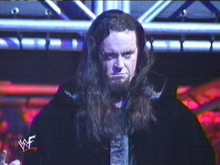 là, j'avoue ! Je suis fan de ce look ! L’Undertaker fait un retour surprenant en changeant totalement de personnage. Fini les personnages surnaturels et lugubres. Il devient The American Bad Ass, un biker aux cheveux attachés dans un bandana et conduisant sa fidèle moto. Seule la cloche d’introduction de son ancien personnage a survécu au changement. Avec sa nouvelle personnalité, il s’érige en champion du bien et combat l’alliance Mac Mahon/Hemsley. Sa seule véritable défaite va venir de son frère qui va, une fois de plus, le trahir lors d’un match par équipe face à Edge et Christian. Il prendra alors sa revanche lors d’un duel où il va retirer le masque du traître.