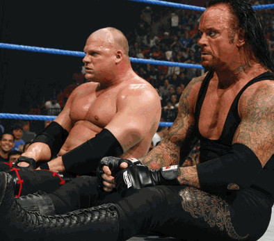 Bearer et l'Undertaker, le duo de la mort ! Le sort, après avoir bien aidé le Deadman, va s’acharner sur lui. En effet, lors d’un match qui aurait pu le mener au titre, il va se blesser sévèrement au visage. Pas de chance puisqu’il avait déjà mis du temps à revenir après sa victoire face à HBK. Kane arrive peu après pour déclarer que le Deadman était dans un état végétatif. Mysterio remplace le Deadman dans la course au titre et devient champion. Kane accuse alors le luchador d’avoir attaqué son frère pour lui prendre sa place. Rey se défend en lui disant que c’est Kane le responsable car il ne supporte pas d’être dans l’ombre de son frère. L’Undertaker fera son retour sur le ring et Kane révèlera sa trahison (oui encore ! ). Kane semble même plus puissant grâce au vol des forces occultes qui inondaient son frère. L’Undertaker revient alors avec Paul Bearer mais ce dernier se retourne aussi contre lui. Cependant, le Deadman parvient à reprendre des forces et Kane échappe au destin d’être enterré vivant de justesse. En effet, le Nexus va venir aider le Big Red Monster et lui sauver les miches.